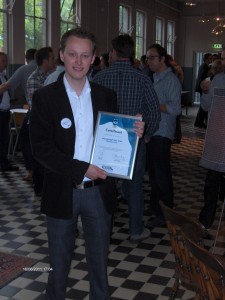 Vervolgens ging Huiskamp over tot uitreiking van het MQM certificaat aan Bas de Loo, de vertegenwoordiger van Bouwservice.